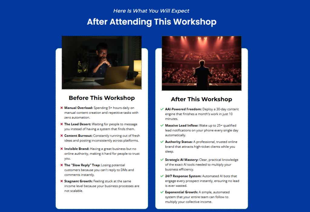 This Workshop is your opportunity to unlock your potential and achieve massive growth!